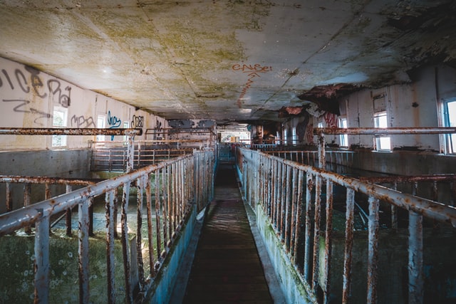 生豬屠宰前在待宰間休息,以使畜體代謝恢復(fù)正常,排出積蓄在體內(nèi)的代謝產(chǎn)物;屠宰前對待宰的活豬進行噴水淋浴以消除豬體表的污物,減少在加工過程中的污染。清洗完畢后首先將豬致暈,致暈過程可減少豬的應(yīng)激反應(yīng),控制pH,提高產(chǎn)品質(zhì)量。致暈的生豬刺殺后立即用鐵鏈子將豬腿拴住,盡快放血。